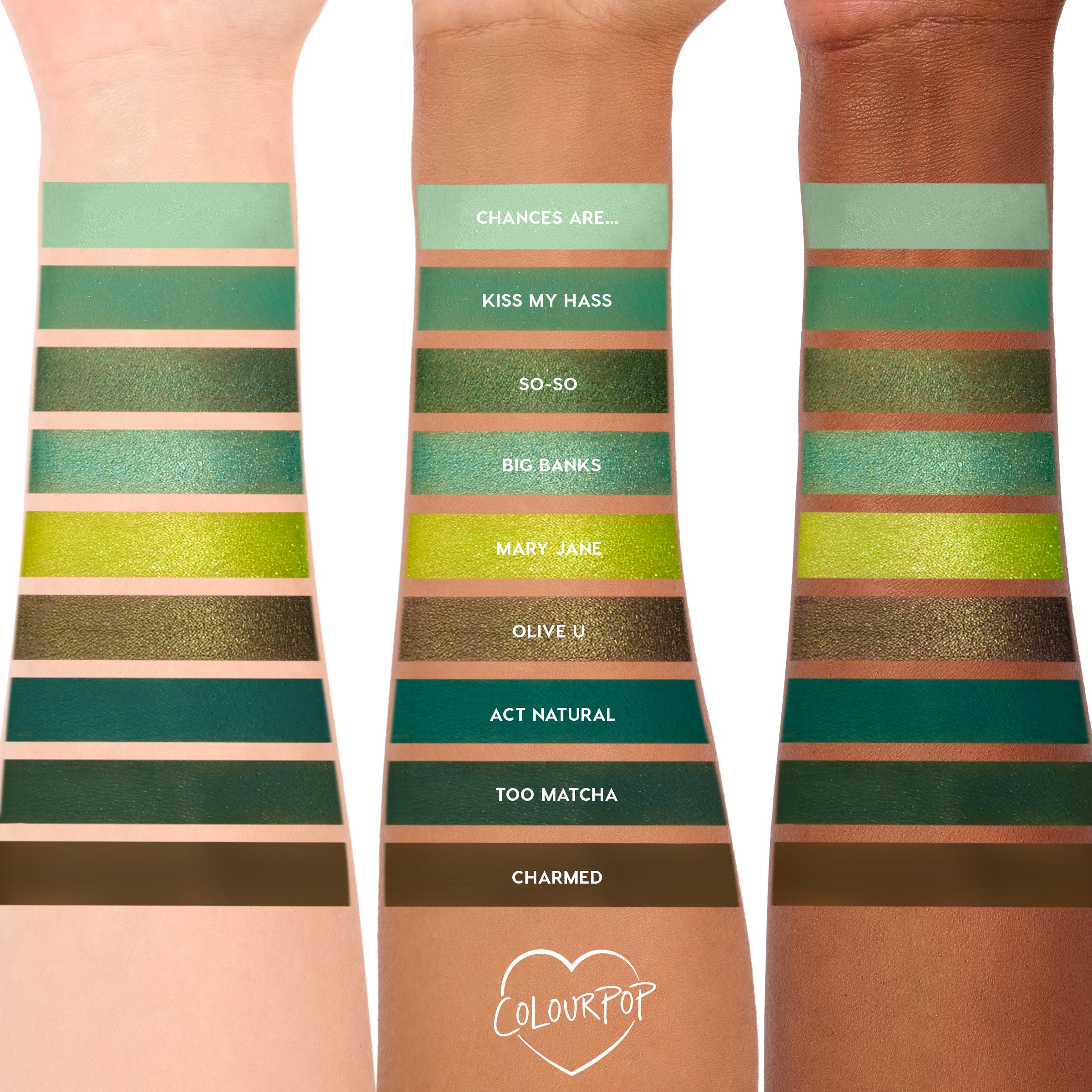 She’s so lucky, she’ll be the star of your makeup collection. This green monochromatic palette features 9 Matte and Metallic shadows in every shade of green you can think of. Featuring our ultra-pigmented, blendable pressed powder formula that’s long-lasting & applies evenly. Bring on the bold chartreuse looks or add an olive touch to your smokey eye.
