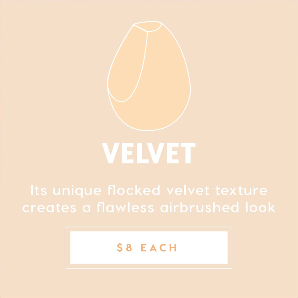 A reusable latex-free microfiber sponge with a unique, flocked velvet texture that creates a flawless, airbrushed look.