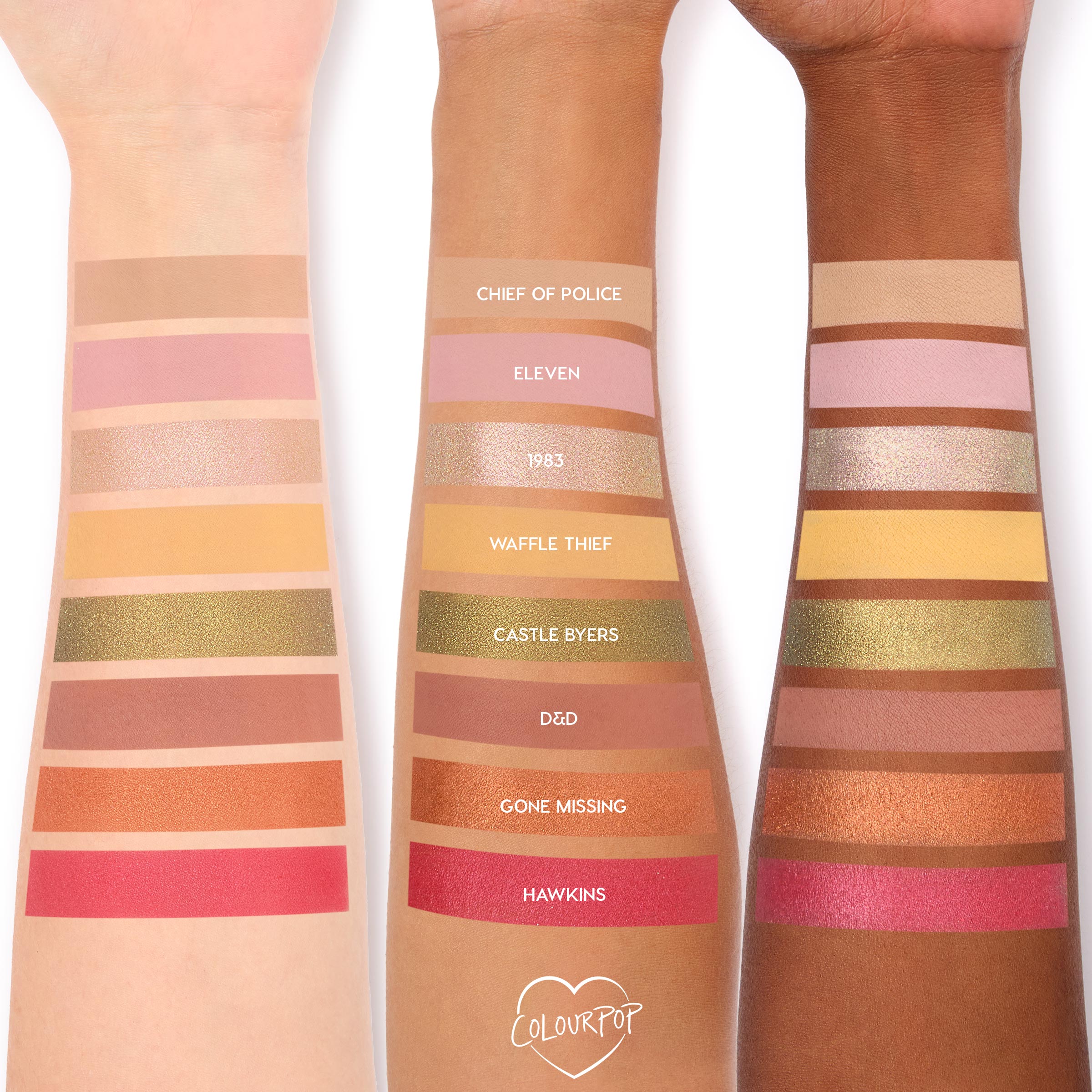 This limited-edition palette features 16 shades inspired by Stranger Things Season 1: the top half represents Hawkins and the bottom half represents the Upside Down! It features our ultra-pigmented, blendable formula that’s long-lasting and applies evenly in Matte, Metallic and Pearlescent Glitter finishes. Enter an alternate dimension with supernatural shades for endless unreal looks, from blue smokey eyes to retro soft glam.
