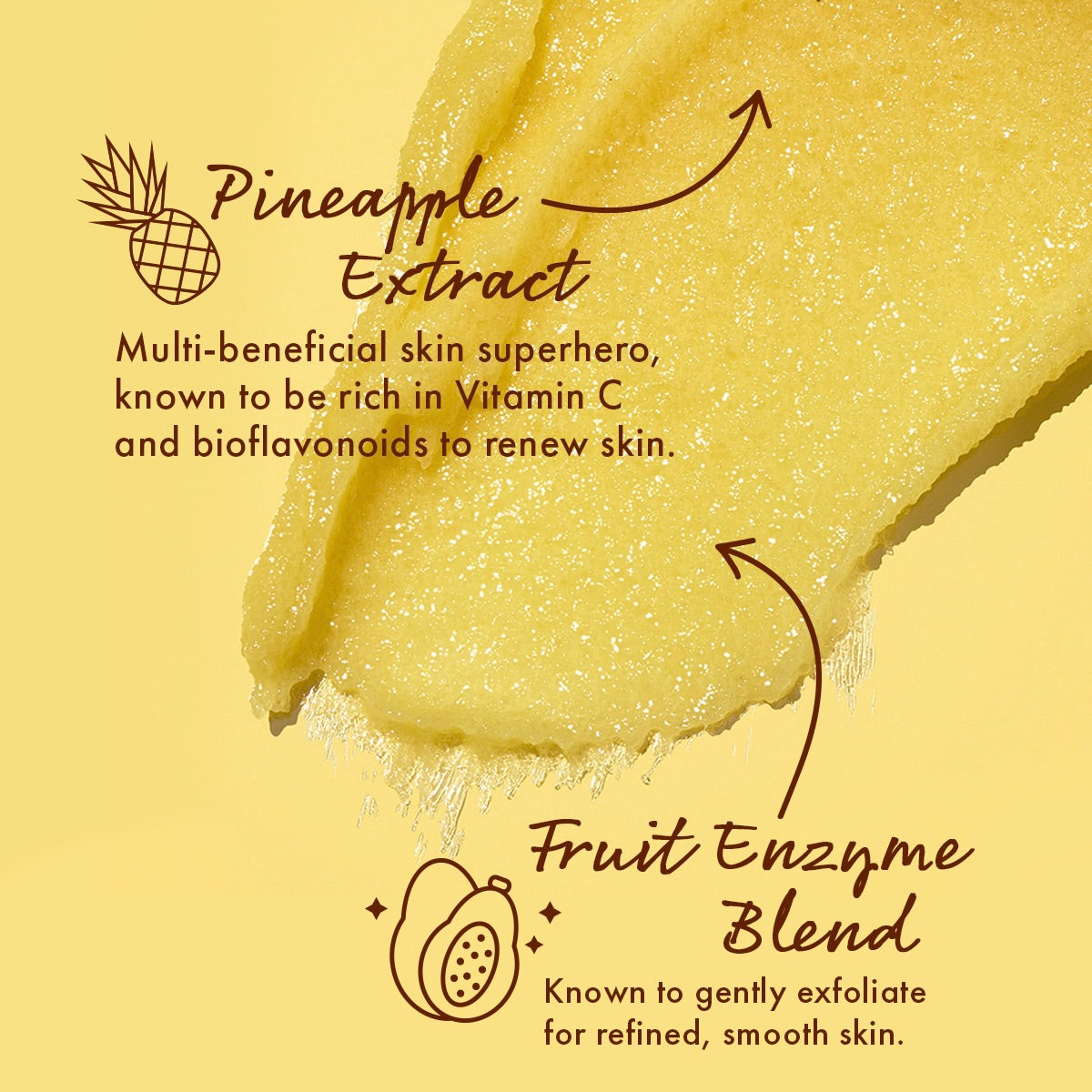 WHAT IT DOES - A tropical face polish that gently buffs away dead skin with super fine Sugar Crystals and an exfoliating Fruit Enzyme Blend to leave skin super soft to the touch. THE GOOD STUFF – Formulated with calming, bioflavonoid-rich Pineapple Extract known to renew skin for a smooth, healthy-looking complexion. MORE DEETS - Revitalize skin with this gentle face polish for a fresh, healthy glow. It’s spiked with a tropical pineapple scent that will take your exfoliation experience to a whole new fresh n’ fruity level.