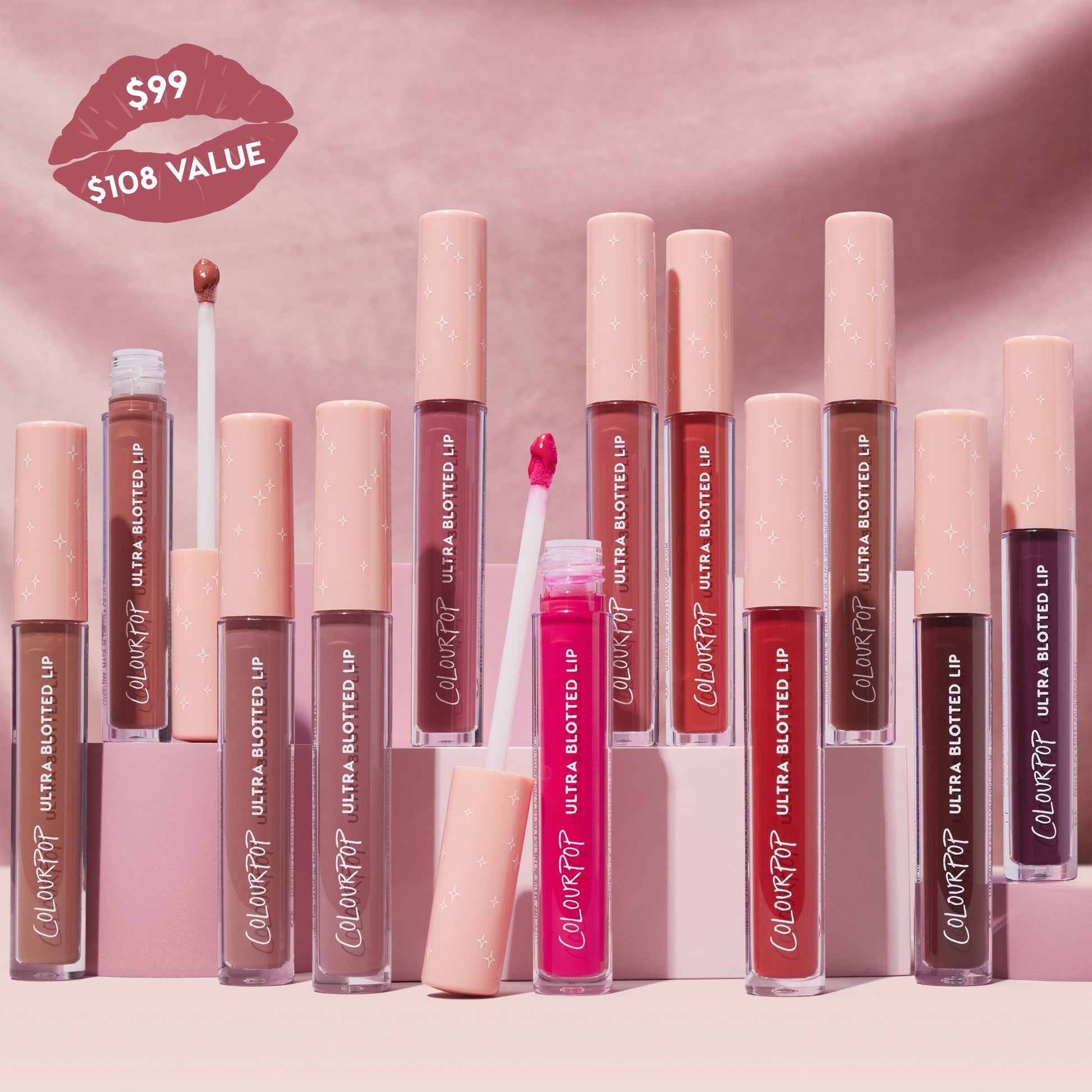 Get all 12 Ultra Blotted Lip shades! Our creamy, comfy medium coverage liquid lipstick dries down to a diffused matte finish for a just blotted look. It’s lightweight to leave lips looking smooth & fresh with the perfect amount of long-lasting soft colour without flaking! Infused with antioxidant-rich Kakadu Plum & Sweet Cherry Oil, Yuzu & Japanese Sumac. Shades Included: Doozy Zuma Starling Attenion Plz Canon Dr Espresso Martini Keep It Classy Kitten Rose Latte Slow Jam So Vintage Still an Icon