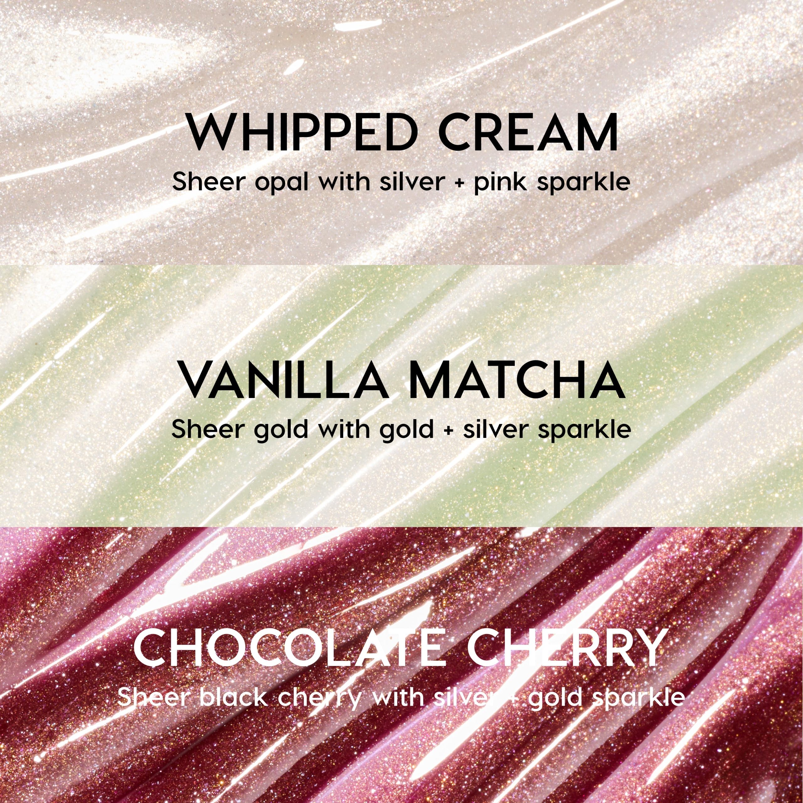 Vanilla Matcha: Sheer gold with gold + silver sparkle – vanilla matcha flavor