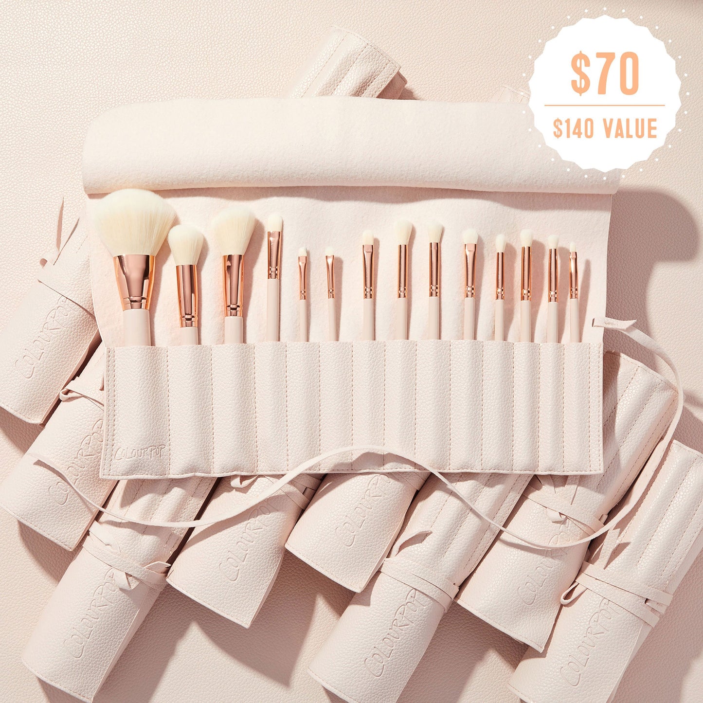 The ultimate matte palette + brush duo! Matte About Hue Pressed Powder Palette - This 30-pan palette features a range of pastels to ultra-brights in ALL matte, super creamy & rich shades we’re over the rainbow about. Ultimate Brush Roll - This faux leather brush roll includes 14 vegan, cruelty-free eye & face brushes that will help you create any look! Includes: Large Face Brush F18 Rounded Cheek Brush F20 Angled Cheek Brush F21 Deluxe Blending Brush E15 Large Tapered Blending Brush E16 Detailed Blending Brush E17 Small Dome Brush E18 Precision Blending Brush E19 Micro Shader Brush E20 Round Pencil Brush E21 Medium Shader Brush E4 Small Shader Brush E3 Angled Eye Brush E6 Lip Brush L1