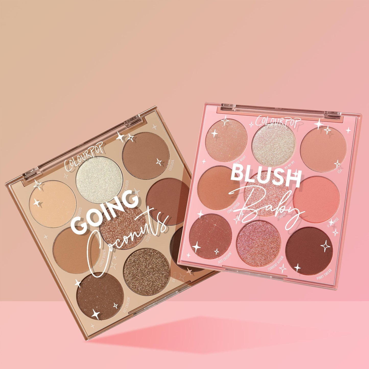 Get the perfect everyday looks with this neutral duo. Going Coconuts - Go loco for this toasted neutral 9 pan palette, perfect for your every day look. Blush Baby - Blush it up with 9 pinky neutrals and a range of warm blush pinks in Matte, Metallic and Matte Sparkle finishes!